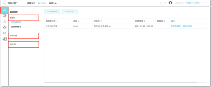 第一步:在【我的数据】中连接数据库表或上传EXCEL数据