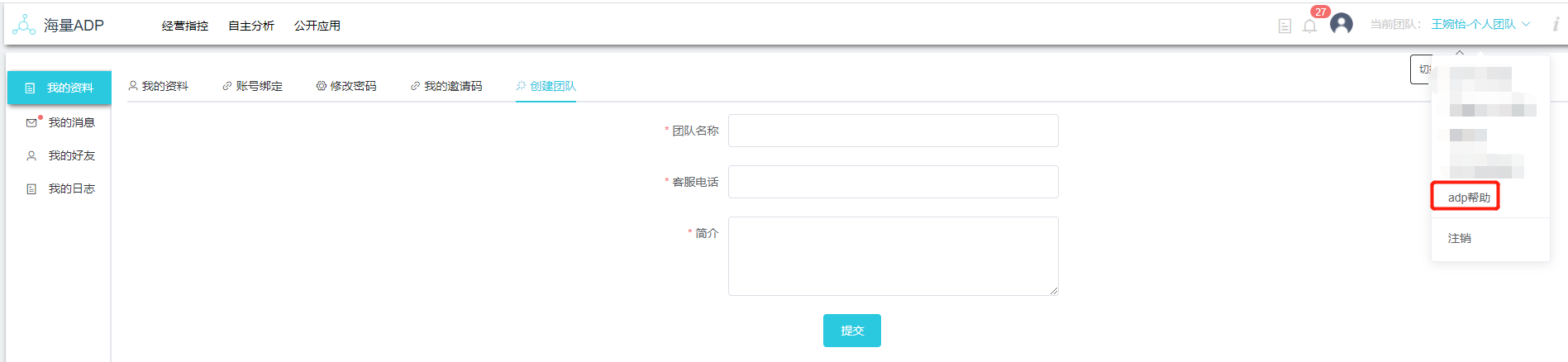 创建团队的目的是可以让不同的用户加入同一团队,对该团队下的各项目进行使用。