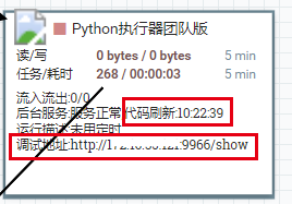 能力执行过程中,能力上会显示查看python脚本报错信息的地址,如:http://IP:9966/show ,可直接在浏览器打开查看。 如果脚本修正错误后重新运行能力,刷新http://IP:9966/show页面就能捕捉到新的错误。