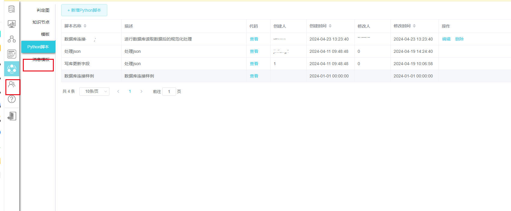 在平台“我的知识”模块---python脚本选项中,进行脚本的管理操作。